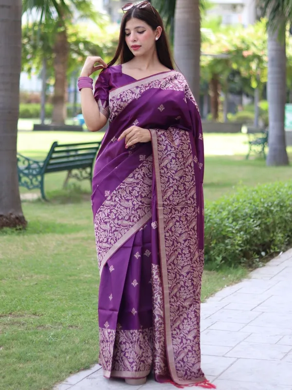 Violet Silk Blend Saree For Women