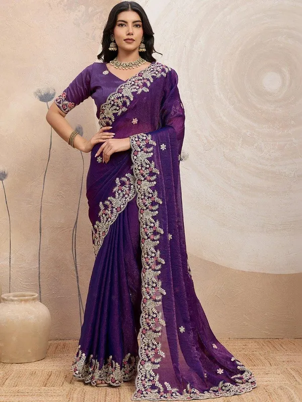 Violet Silk Blend Saree For Women