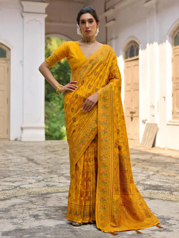 Yellow Art Silk Saree For Women