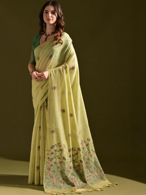 Yellow Muga Pure Cotton Saree For Women