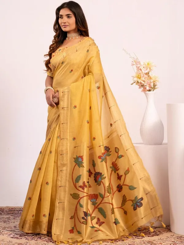 Yellow Pure Cotton Saree For Women