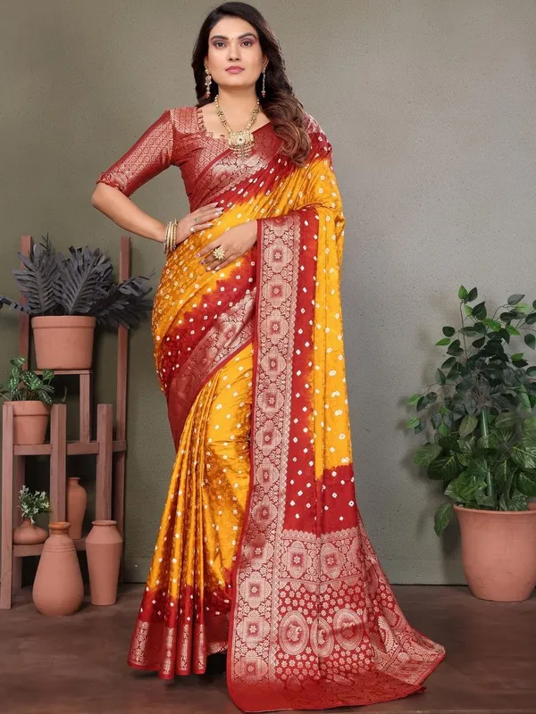 Yellow Silk Blend Saree For Women