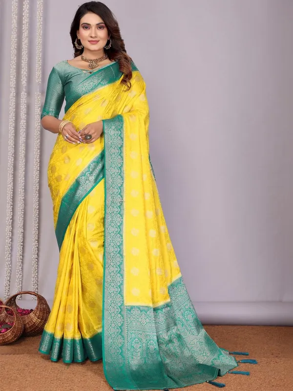 Yellow Silk Blend Saree For Women